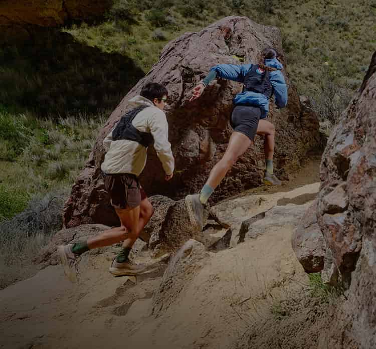 Person steht auf felsigem Untergrund und trägt robuste KEEN Herren-Trail- und Wanderschuhe mit griffiger Sohle.