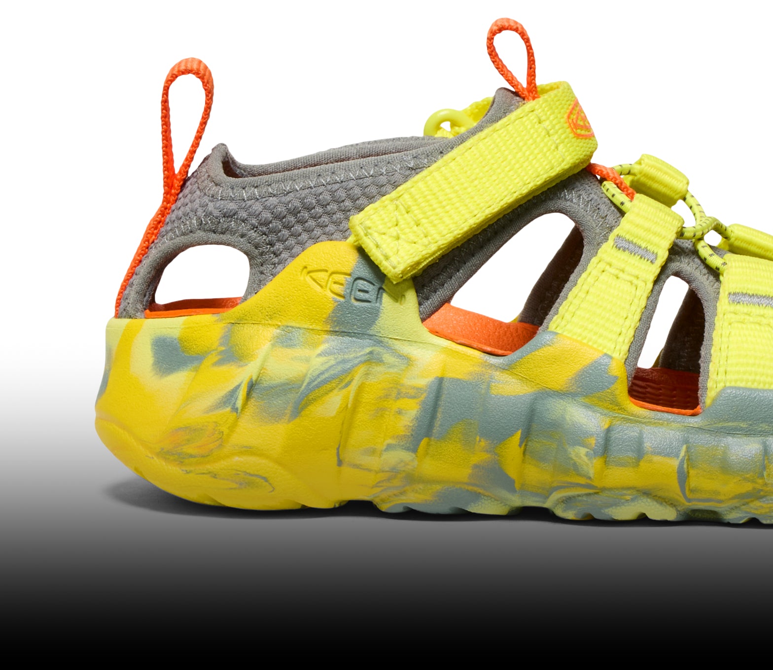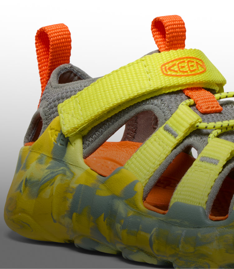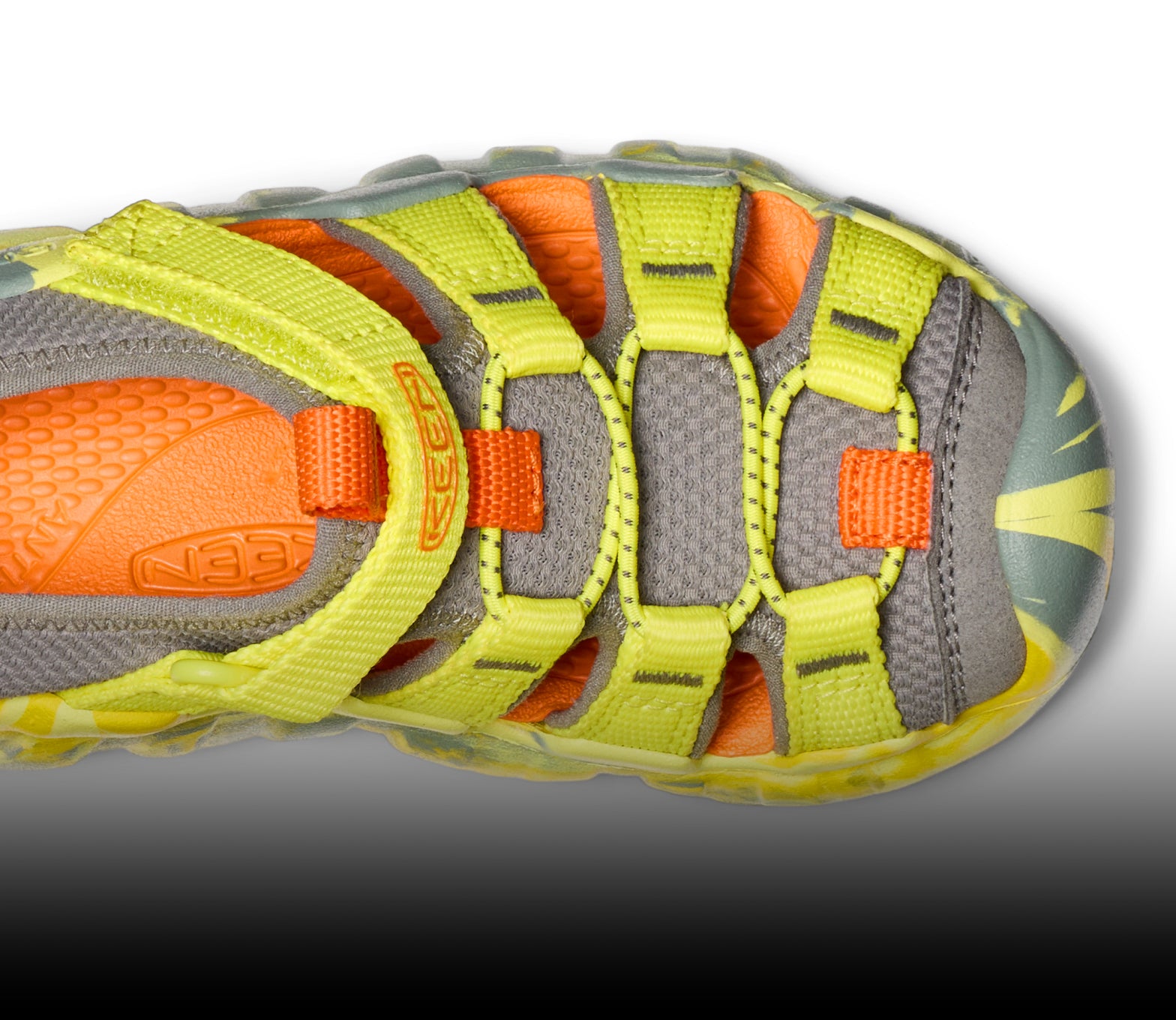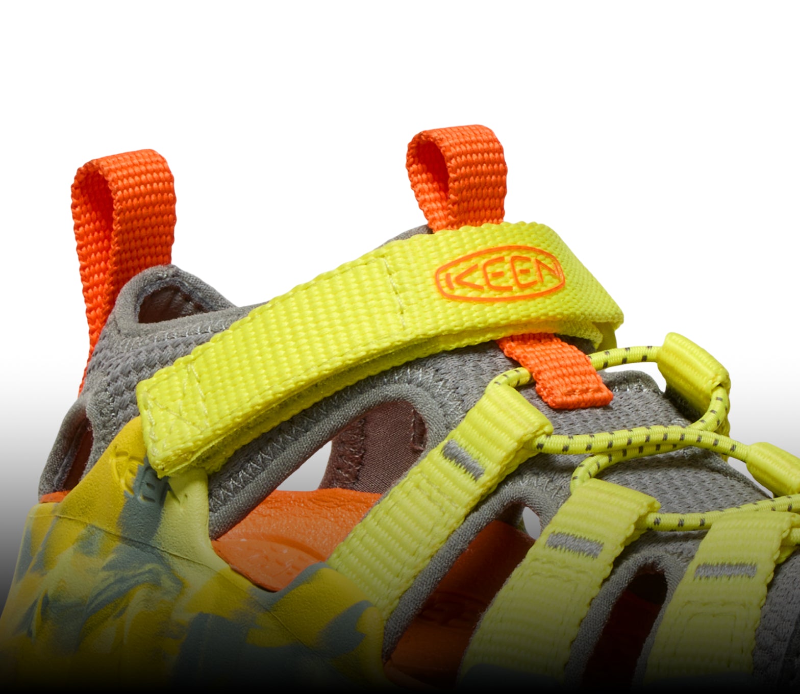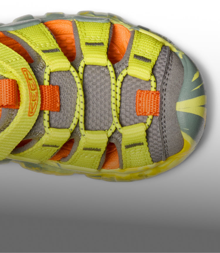 Stretch mesh heel they can pull on, with easy-cinch bungee lacing and adjustable strap for a secure fit.