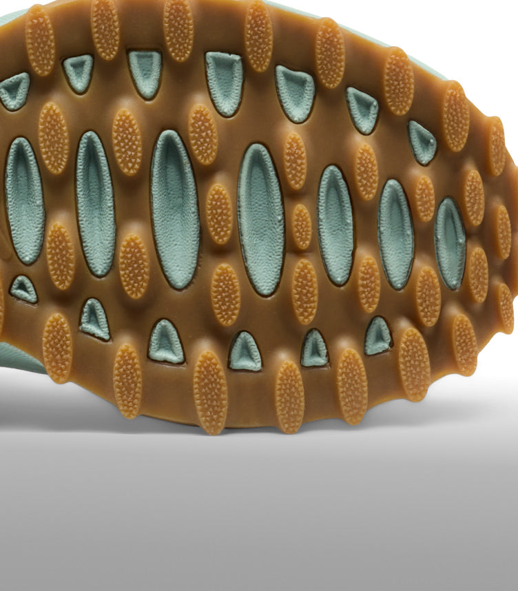 We use harvested materials, like webbing made from post-consumer plastic bottles and outsoles made with agricultural waste. Fewer resources, less impact.