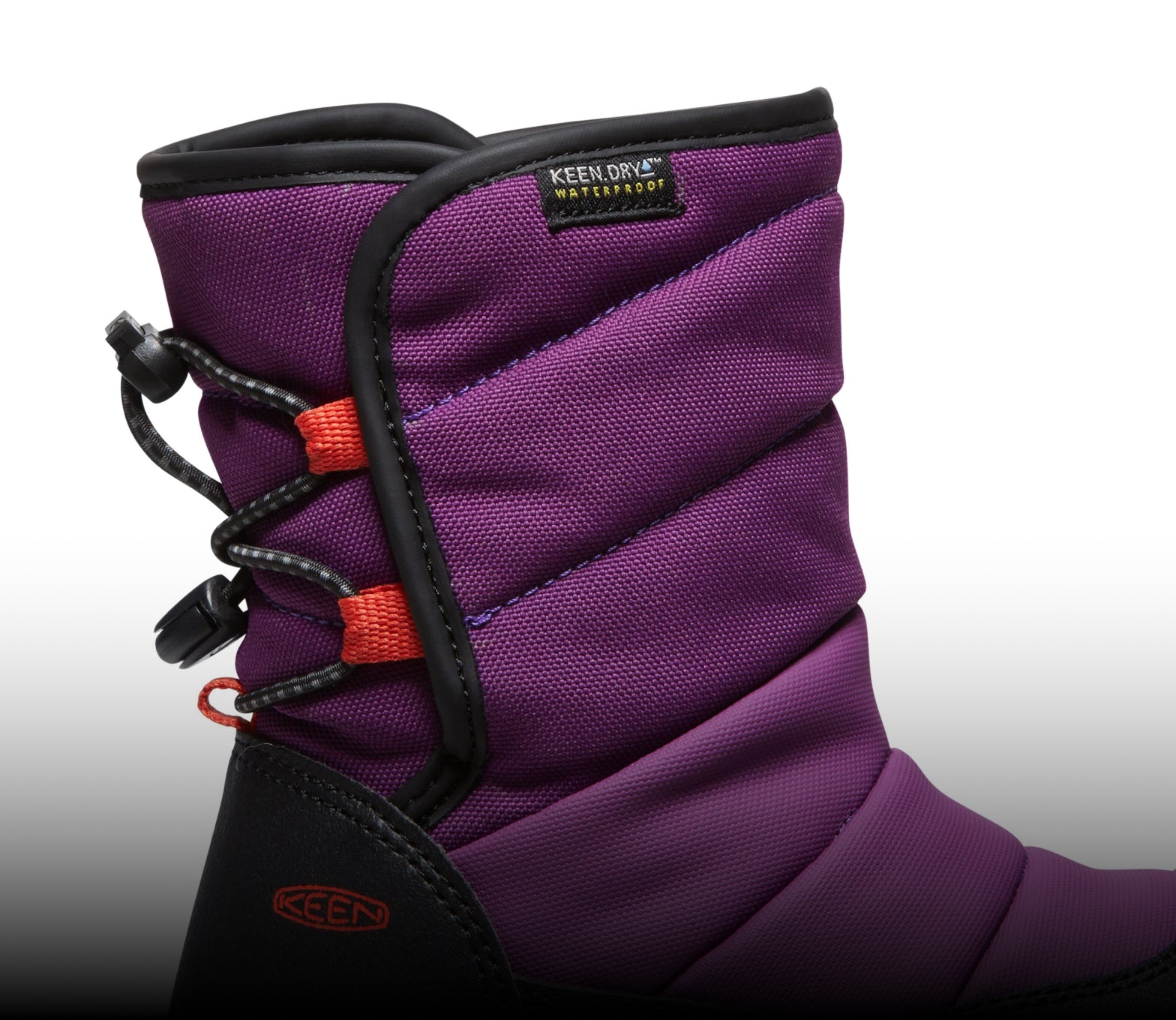 Mit der wasserdichten KEEN.DRY-Membran innen und dem PFAS-freien wasserabweisenden Obermaterial sind matschige Schneetage kein Problem.