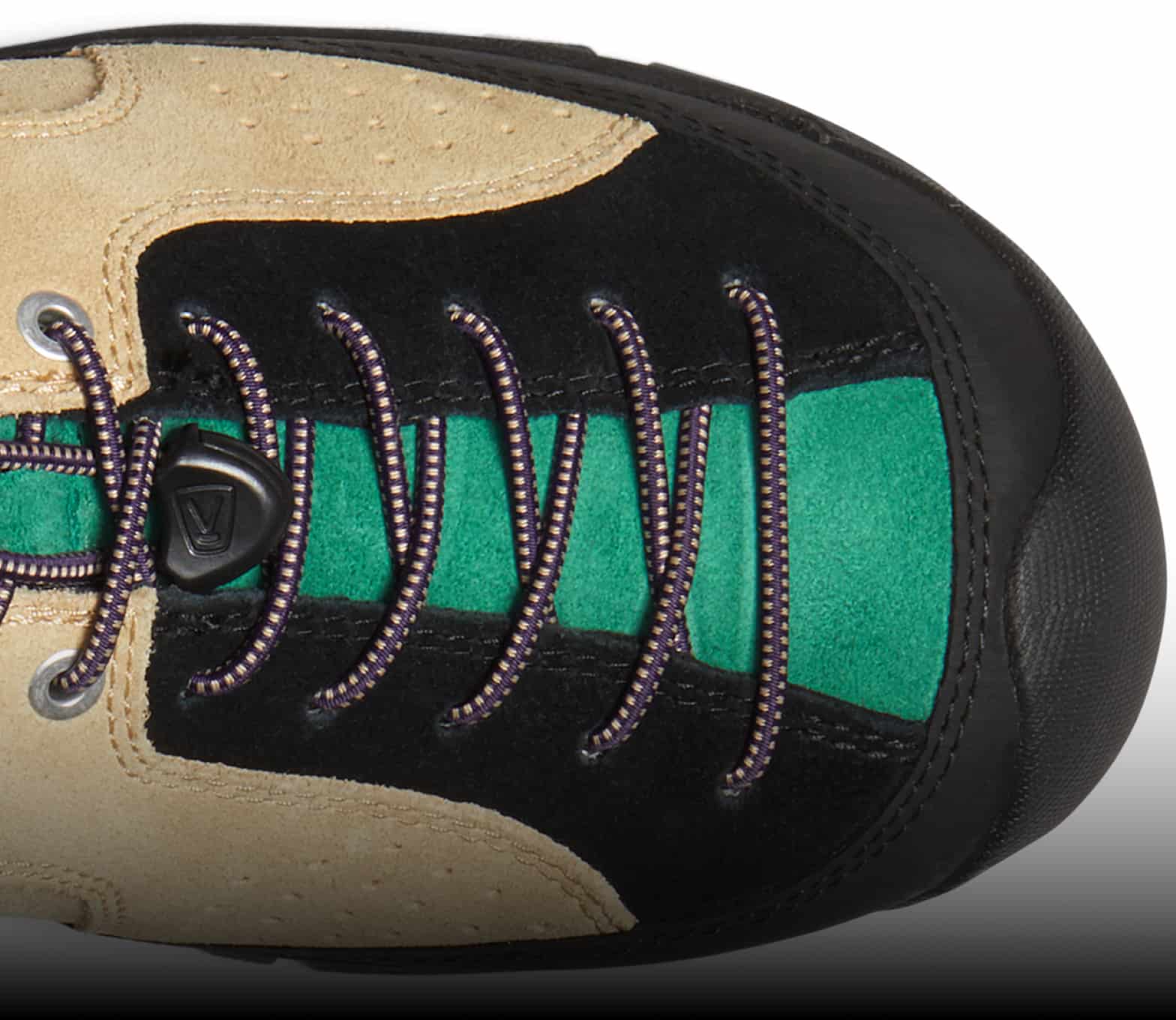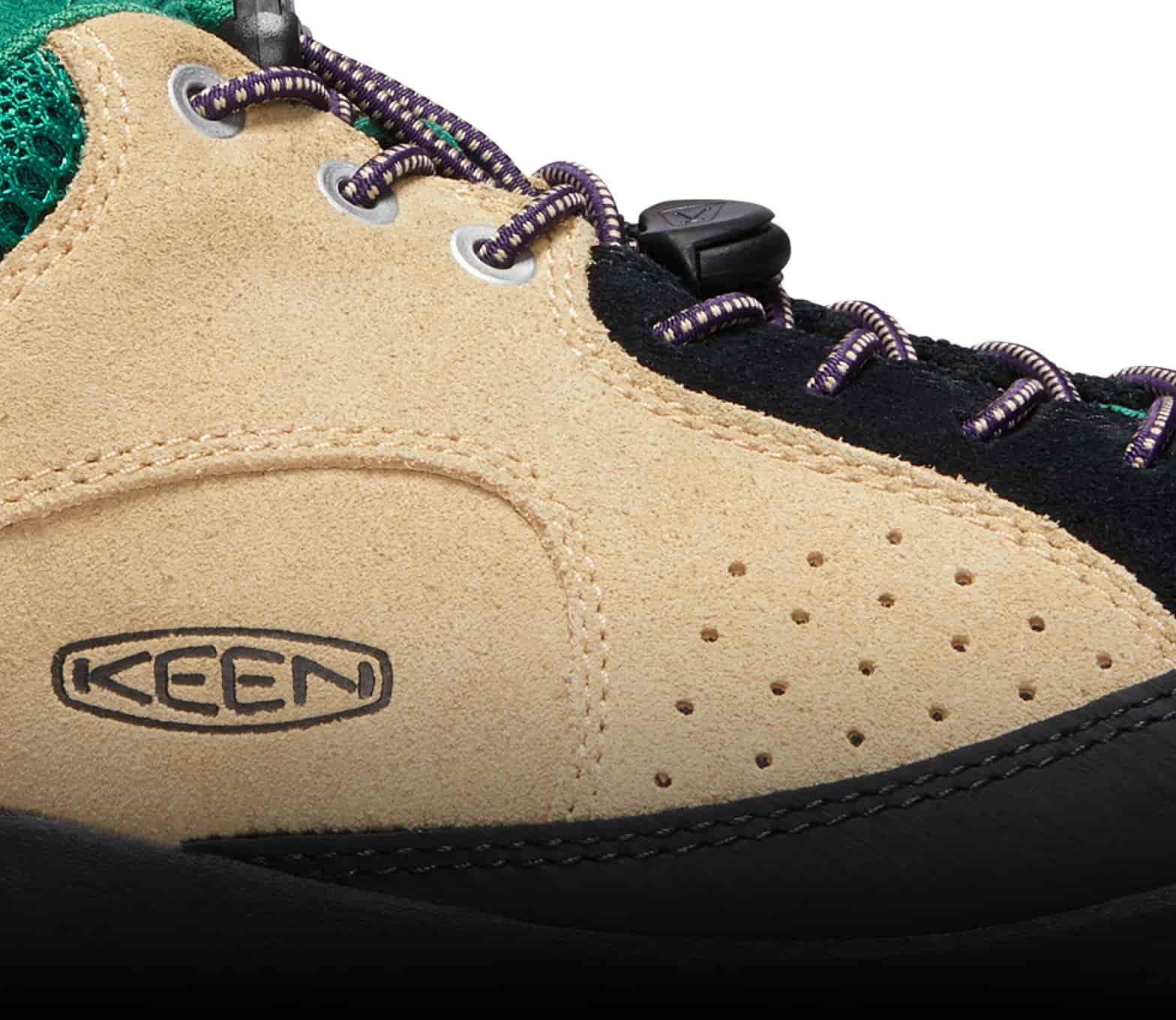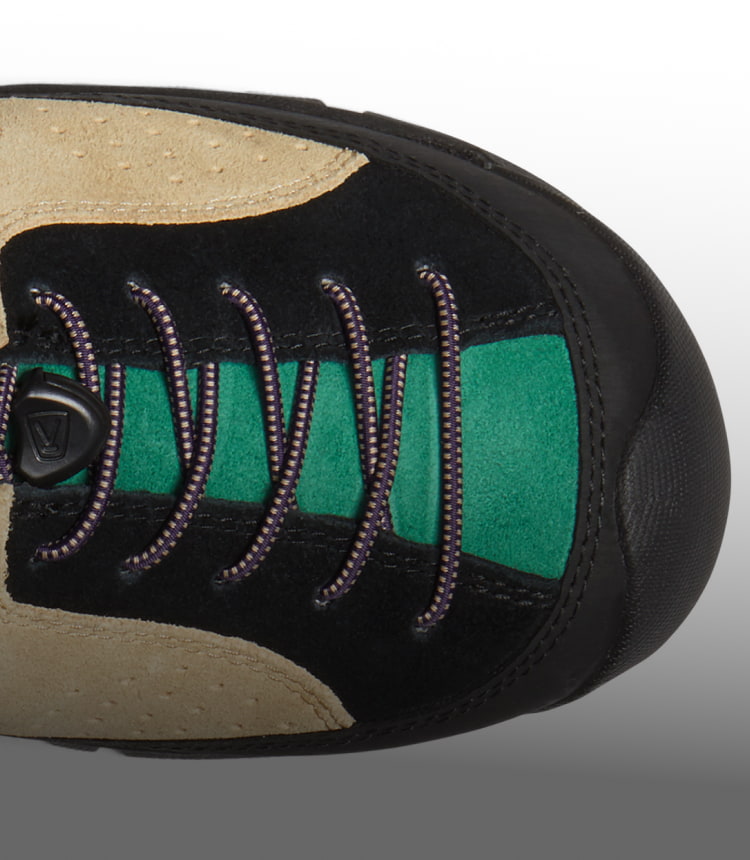Eine konturierte Passform und eine durchgehende Schnürung sorgen für einen bequemen Sitz, während du unterwegs bist.