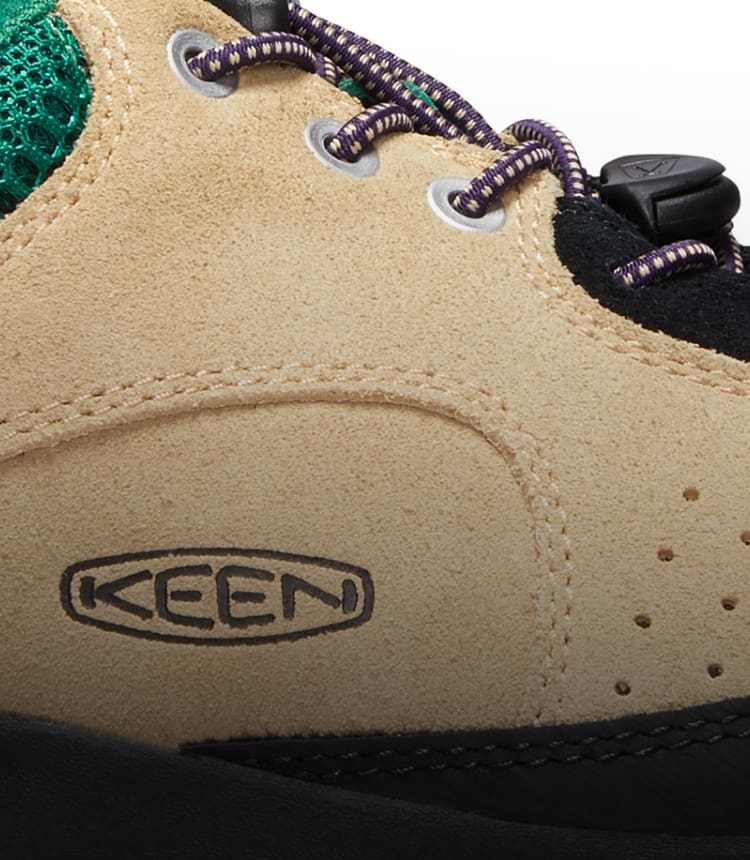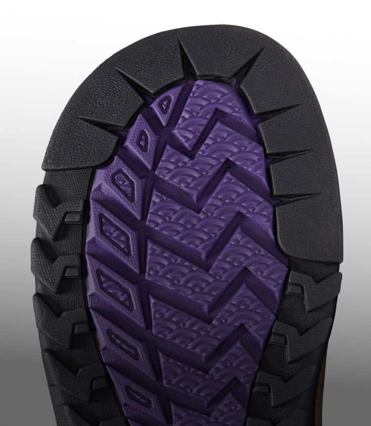 Vom Wanderweg bis in die Stadt: die griffige, flach profilierte Gummilaufsohle bewegt geschmeidig mit deinem Fuß mit.