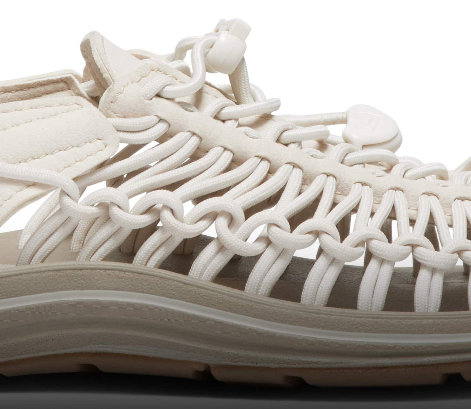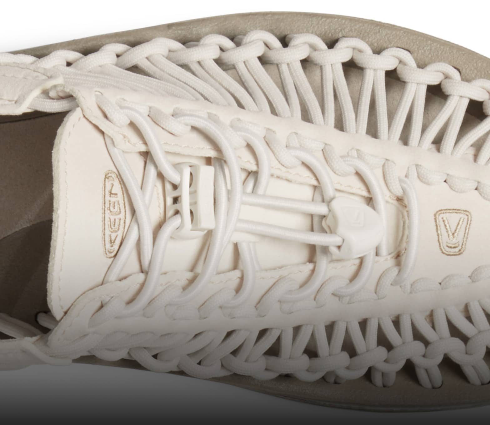 Das bewegliche Obermaterial aus zwei Schnüren lässt sich vielseitig verstellen und passt sich so der Form deines Fußes an.