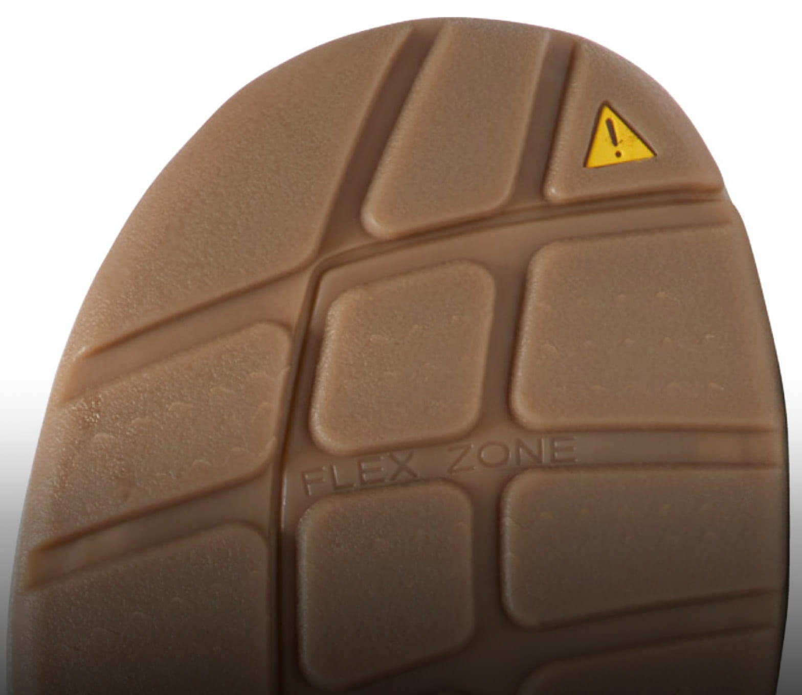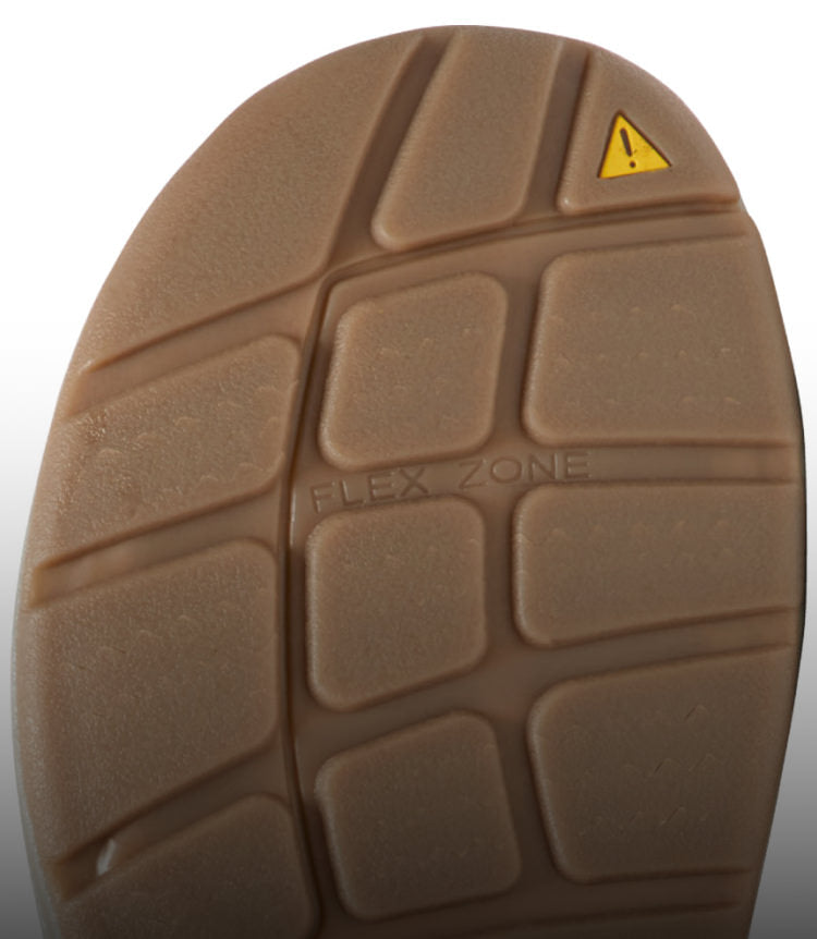 Die flexible Gummisohle meistert jedes Terrain, sogar Wasser. Rillen im Profil leiten das Wasser ab und sorgen so für besseren Grip bei nassen Bedingungen.